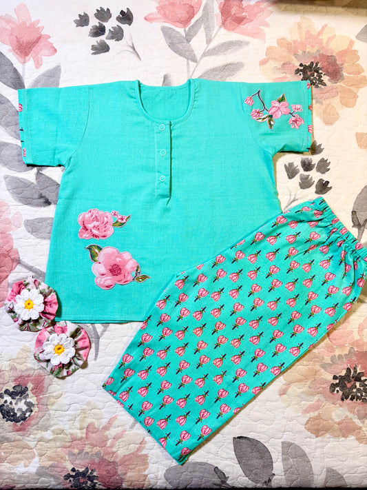 Turquoise Blossoms Appliqué Summer Set