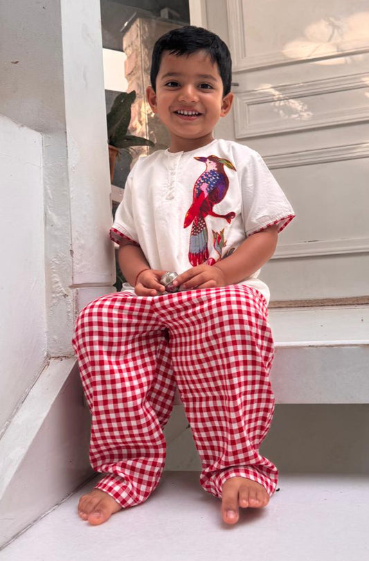 Chequered Birdy Appliqué Summer Set